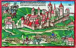 Die etymologische Bedeutung des Wortes Truchsess rührt daher, dass er dem Tross vorsaß. Truchsess hat also in etwa die Bedeutung Vorsitzender des Gefolges. Die abgebildete Darstellung von Stadt und Schloss ist ein Wandereisen-Holzschnitt von 1523. Die Stadt wurde vom Schwäbischen Bund angegriffen und geschatzt, da Angehörige der ansässigen Familie von Rosenberg mit dem Raubritter Thomas von Absberg gemeinsame Sache machten.