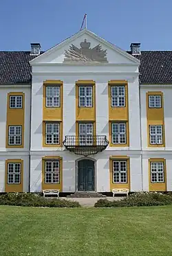 Der Bau von 1770 geht auf ein älteres Schloss aus dem 17. Jahrhundert zurück. Es ist die größte und einheitlichste Barockanlage im südlichen Dänemark[2] und nach Schloss Gottorf der zweitgrößte erhaltene Residenzbau im einstigen Herzogtum Schleswig.