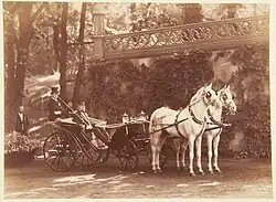 Im Unterschied zu den Sommerresidenzen anderer preußischer Könige, etwa den Schlössern in Paretz, Charlottenhof, Glienicke und auf der Pfaueninsel war Babelsberg kein sporadisch besuchter Herrschersitz. Wilhelm I. kam nahezu jedes Jahr im Sommer hierher.[61] In seiner Zeit als deutscher Kaiser folgten seine Aufenthalte einem routinierten Jahresablauf. So verbrachte er den August auf Schloss Babelsberg. Von dort reiste er im September zu Kaisermanövern ab. Es folgten Aufenthalte bei seiner Tochter in Baden-Baden sowie in Berlin. Im November nahm Wilhelm I. an Hofjagden teil.[62] Seinen Aufenthalt in Babelsberg nutzte Wilhelm meist für Spaziergänge oder Ausfahrten mit der Kutsche oder einem Schiff.[63]