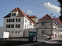 Das Stift hatte bereits seit 969 Grundbesitz in Batzenhofen und erwarb den Ort nach dem Aussterben des Ortsadels 1530 ganz. Um 1750 wurde dann der zweigeschossige, hakenförmige Bau mit Walmdach oberhalb der Schmutter errichtet und als Sommersitz genutzt, das Dach- und Deckengebälk stammt aus dem Jahr 1712.[2] Nach der Säkularisation von 1803 wurde das Gebäude direkt wieder durch das Kurfürstentum Bayern verkauft und von den neuen Besitzern in ein Brauhaus umgewandelt, das bis 1920 mit Gaststätte betrieben wurde. Der Braumeister Max Schmidt verkaufte das Haus dann an die Innere Mission, die zeitweise von 1925 bis 1928 unter dem Namen Sonnenhof ein Kinderheim hier unterhielt. Ab September 1928 wurde durch die Augsburger Diakonissenanstalt dann ein Altersheim mit zunächst 50 Plätzen eingerichtet, welches 1947/48 modernisiert und mit einem Anbau für weitere 40 Zimmer vergrößert wurde. Weitere Renovierungen und Modernisierungen mit Aufzug und Pflegestation folgten bis in die 1980er Jahre. Trotzdem entsprach das denkmalgeschützte Haus nicht mehr den Standards, und das Altenheim wurde 2007 in einen Neubau nach Gersthofen verlegt.