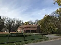 Die Straße der Einheit führt von Norden kommend in den Ort. Dort, am nördlichen Dorfeingang, steht das Ensemble westlich der Straße auf einem Grundstück, das mit einem schlichten Zaun eingefriedet ist.