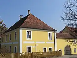 Das Schloss ist ein barocker zweiflügeliger und zweigeschossiger Walmdachbau mit genuteten Ecklisenen und Putzgliederung und mit einem rechtwinklig anschließenden Torhaus und Rundbogeneinfahrt. Die Wappentafel zeigt das Baujahr 1726.