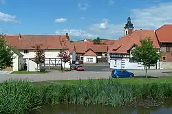 Zum Schloss gehörte auch der vorgelagerte Gutshof mit (Pferde-)Stallungen, Scheunen, Lager- und Wirtschaftsgebäude, von denen heute nur noch wenige Gebäude erhalten sind.
