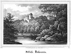 Die erste urkundliche Erwähnung eines sich nach der Burg nennenden Adligen ("Guntherus de Biverstein") stammt aus dem Jahr 1218. Die Herren und späteren Freiherren von Bieberstein spielten später eine bedeutende geschichtliche Rolle in Böhmen, Schlesien und den Lausitzen. Im 17. Jahrhundert sind sie erloschen.