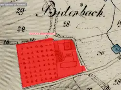Biedenbach war Sitz einer Hofmark der Landshuter Familie Reykher. So ist im Jahr 1503 Caspar Reykher zu Bidenbach nachgewiesen. Später gelangte das Schloss in die Familie der Grafen zu Freyen Seyboltstorff. Für den nachgeborenen Sohn Georg Carl Anton Alois Adam zu Freyen Seyboltstorff, der als Pfarrer in Velden wirkte, wurde das Schloss um 1720 neu erbaut. Bis Ende des 19. Jahrhunderts war Biedenbach Pfarrhof von Velden.