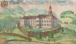 Das Schloss, dessen älteste Teile vom Anfang des 16. Jahrhunderts stammen, wurde mehrfach umgebaut. 1644 erfolgte eine Restaurierung, zwischen 1890 und 1910 eine historisierende Umgestaltung, zwischen 1920 und 1930 eine Generalsanierung. Der Nordturm wurde 1927 errichtet.
