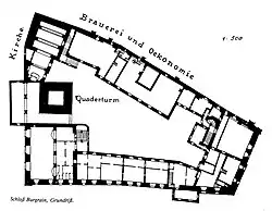 Am Südwesteck des Schlosses befindet sich die barocke Schlosskirche St. Georg (Innenlänge 19 Meter). Das Bodenniveau der Kirche ist, da sich darunter eine frühgotische Unterkirche befindet, im ersten Obergeschoss, vom Innenhof führt eine Treppe zum Kircheneingang hinauf. Außen sitzt am Kirchen-Nordwest-Eck ein Rokoko-Dachreiter.