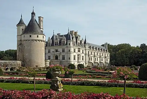 Seine Wurzeln liegen in einem befestigten Anwesen mit dazugehöriger Wassermühle, das über die Familie Bohier in der ersten Hälfte des 16. Jahrhunderts in den Besitz der französischen Krone kam. Diane de Poitiers prägte das Aussehen des Schlosses durch Erweiterungen ebenso, wie es ihre Nachfolgerin Katharina von Medici tat, der die Anlage ihre berühmte Galerie zu verdanken hat.