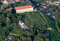 Schlossmauer von Schloss Dachau, von der Rathaus-Terrasse aus gesehen.