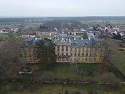 Schloss Dornburg im Luftbild von der Hofseite