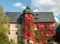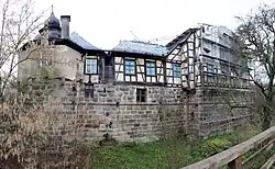 Der eigentliche Schlossbau besteht weitgehend aus konstruktivem Fachwerk, das im Bereich des Hauptgebäudes teilweise verputzt wurde. Im Osten und Südwesten steigen die Wohnbauten unmittelbar über dem steinernen Bering auf. Das Hauptgebäude steht in der Mitte der Ringmauer, ist aber durch einen Anbau mit dem Bering verbunden. Der Südflügel besitzt nur ein Fachwerkobergeschoss, während das Hauptschloss noch ein zweites Obergeschoss trägt und von steilen Satteldächern abgeschlossen wird.