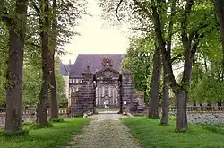 Die Anlage ist an zwei Seiten von Wassergräben umgeben. Ein mächtiges Tor mit Zugbrücke bildet den Eingang. Vom ursprünglichen Schloss blieben nur zwei Pavillons, während zwei Gebäudeflügel abgetragen wurden. Die Fassade ist mit dorischen Pilastern dekoriert. Die Nebengebäude und der Hof wurden im späten 17. Jahrhundert errichtet.[1]