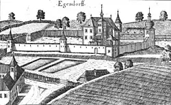 Von diesem ging der Besitz an Jakob Ostermayr aus Nördlingen über. Der Garstner Hofrichter Florian Ostermayr ließ 1580 den alten Bau abreißen und das heutige Schloss errichten. Von den Ostermayr ging der Besitz an Georg Nikolaus Pucher von Meggenhausen über, der 1633 als Besitzer genannt wird. Seit Mitte des 17. Jahrhunderts war Eggendorf mit der Herrschaft Hueb vereinigt. 1660 erwarb Graf Christoph von Schallenberg das Schloss. Seine Tochter Christine brachte es als Heiratsgut in die Ehe mit Johann Ludwig von Polheim ein. 1698 erwarb Graf Max Spiller von Mitterberg Egendorf aus der Polheimschen Erbmasse. Nun folgte ein rascher Besitzerwechsel, zu nennen sind: Georg Adam von Hoheneck (1709), Regimentsobrist Johann Adam von Wendt (1710), Franz Egon von Wendt (1716), Johann Thomas Freiherr von Gartner (1740), von der Seeauschen Vormundschaft (Grafen von Seeau) ging der Besitz 1767 an Franz Ignaz Maierhofer. Die Maierhofers waren bis 1851 Besitzer, dann wurde das Schloss an Edmund Holenia verkauft. 1885 kam Egendorf in den Besitz der Familie Fischer von Ankern.