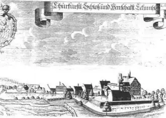 Das Schloss ist eine gegliederte, unregelmäßige Vierflügelanlage um einen nach Nordosten geöffneten Rechteckhof aus dem 15. Jahrhundert. Der Westflügel, ein ehemaliger Torbau ist ein zweigeschossiger, erdgeschossig gewölbter Walmdachbau mit Zwerchhäusern und Schweifgiebel. Der Südflügel ist ein zweigeschossiger Walmdachbau über unregelmäßigem Grundriss. Der Nordflügel ist ein dreigeschossiger Walmdachbau mit Resten der Zwingermauer mit vier runden Türmen aus Bruchstein von 1432.