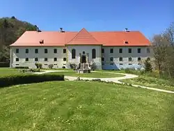 Am Standort eines ehemaligen Klosters gelegen, erinnert Schloss Ehrenfels an einen großen Gutshof. Von 1735 bis 1740 ließ der Abt des Klosters Zwiefalten, Augustin Stegmüller, das Schloss als Sommerresidenz anstatt eines Meierhofes in einem einfachen Barockstil erbauen. Das Schloss liegt über dem 66 m langen Keller, der in den Stein geschlagen wurde. Dieser wurde als Vorratskeller des Klosters genutzt, da in Zwiefalten aufgrund des sumpfigen Bodens kein Keller gegraben werden konnte. Noch heute befindet sich über der Eingangstür zum Hof hin das Wappen des Abtes Stegmüllers. Die einstige Kapelle der Mönche ist ebenfalls noch erkennbar, sowie die ausgetretenen Böden im Erdgeschoss, insbesondere zur Küche der Mönche hin.