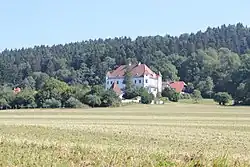 Schloss Ehrnegg ist an einem Berghang südöstlich von St. Kollmann in der Gemeinde Griffen gelegen.