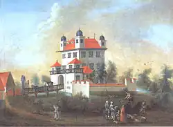 Das Schloss wurde als Wasserburg erbaut. Im Grabenring erhebt sich der Schlosshof, der von Brüstungsmauern eingerahmt wird. Der Schlosshof bildet eine viereckige Terrasse, die von bastionartigen gezinnten Altanen an den Ecken umfasst wird. Darauf befindet sich das Schloss mit einem Vorbau, der bis an die vordere Schmalseite der Terrasse vorspringt. Der Vorbau enthält in der Mitte die Torhalle. Diese betritt man von der Brücke aus. Rechts und links der Torhalle befinden sich zwei Stuben mit Schießscharten. Darüber erhebt sich eine Plattform mit zwei Pavillons. Das Hauptgebäude hat zwei Obergeschosse, ein französisches Walmdach und vier Dachtürmchen an den Ecken.
