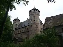 Der älteste Teil der Anlage besitzt einen trapezförmigen Grundriss mit vier runden Ecktürmen. Teile der ältesten Wasserburg finden sich im Südflügel der Kernburg (sog. „steinernes Haus“ in Nachbarschaft zum Roten Turm). Das Mauerwerk des Nord- und Ostflügels stammt aus dem 14., Fachwerkgeschosse und Dächer aus dem 14. bzw. 15. Jahrhundert. Der „Rote Turm“ mit seinem Renaissance-Turmhelm wurde zwischen 1531 und 1588 erbaut und ersetzte einen früheren, kleineren Turm. Er enthält eine Kapelle mit Stuckdecke. Reste von Wandmalereien sind im Schlosshof, im Nordwest-Turm und im „Roten Turm“ erhalten.