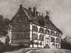 Das in seiner Grundform einfache, zweistöckige Bauwerk wurde in der Barockzeit von 1698 bis 1700 erbaut. Es hat traufseitig fünf und giebelseitig drei Fensterachsen. Der Baukörper ist durch weiß abgesetzte Ecklisenen und profilierte Geschossgesimse gegliedert. Die Fenster sind wechselweise mit Dreiecksgiebel oder Segmentgiebel versehen. Ein ziegelgedecktes Satteldach schließt den Bau nach oben ab.
