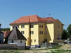 Der dreigeschossige Rechteckbau mit Walmdach aus dem 18. Jahrhundert ist im Kern mittelalterlich. Das Gebäude steht heute unter der Nummer D-2-74-132-2 als Baudenkmal unter Denkmalschutz.[2]
