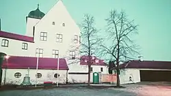 Westseite des Hochschlosses mit gemauerten Übergang zur Kirche und Treppenhausturm