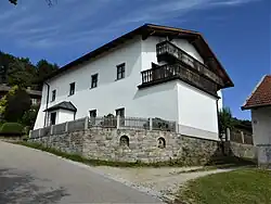 „Ehemaliger Edelsitz, jetzt Bauernanwesen: zweigeschossiger, zum Teil veränderter Flachsatteldachbau des frühen 16. Jahrhunderts; Turmuntergeschoss an der Südecke“