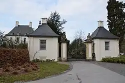 Das Gittertor ist von zwei Torhäusern flankiert, die ebenfalls zwischen 1715 und 1720 errichtet wurden und einen quadratischen Grundriss besitzen. Ihre Pyramidendächer sind mit Schiefer gedeckt und besitzen in der Mitte einen großen Schornstein. Ihrer Funktion nach sind es eher Gartenhäuser, da sich ihre Türen an den von der Durchfahrt abgewandten Seite befinden.