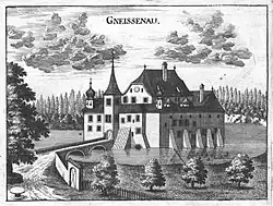 Das wohl zu Beginn des 16. Jahrhunderts errichtete Schloss wurde in den folgenden Jahrhunderten baulich mehrfach verändert und erlebte zahlreiche Besitzerwechsel. Von der ursprünglichen Burg dürften noch die alten Mauern im neuen Schloss verbaut sein. Wie man auf dem Stich von Georg Matthäus Vischer sehen kann, war Gneisenau ein gedrungener Bau inmitten eines runden Teiches. Eine steinerne Brücke führte zu dem heute noch erhaltenen Torturm und dem Innenhof des Schlosses. Die vier Flügel sind durch Einbauten in die ursprüngliche Ringmauer entstanden. In neuerer Zeit wurden dem nun sanierten Schloss weitere Flügel angefügt.