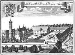 - schlichter dreigeschossiger Bau mit abgewalmtem Dach, 1601 erbaut, nach Westen angeschlossene ehemalige Knabenerziehungsanstalt, jetzt Landschulheim, neubarocke Zweiflügelanlage mit Schweifgiebelzwerchhäusern und Walmdächern, einbezogene Hauskapelle mit Dachreiter, erbaut 1910/11;