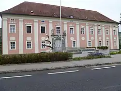 Die Schloss-Gschwendt-Straße führt vom Schloss zentral nordwärts weg.