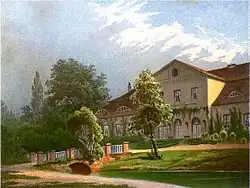 - ↑ Petra Hübinger, Joachim G. Jacobs: Gusow. Der Schlossgarten. In: Brandenburgische Denkmalpflege, 1998, Jahrgang 7, Heft 2, S. 16, Hrsg. Brandenburgisches Landesamt für Denkmalpflege und Archäologisches Landesmuseum Potsdam, Berlin. ISSN 0942-3397.