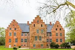 Das Gebäude ist am Übergang der Renaissance zum Barock errichtet worden, eine Phase, die in Holstein erst nach dem Dreißigjährigen Krieg stattfand. Die ursprünglich hufeisenförmige Anlage mit ihrer gleichmäßigen Fensteraufteilung ist bereits barock geprägt, es fehlt jedoch an zeittypischem Schmuck und die strengen Stufengiebel und der mit einer Laterne bekrönte Treppenturm verweisen noch auf frühere Bautraditionen des Herzogtums. Das Herrenhaus war einst von Wassergräben umgeben, wodurch sich der eher wehrhaft anmutende Charakter noch verstärkte. Die Gräben sind heute trockengelegt und hofseitig zugeschüttet, auf der südlichen Seite noch bedingt zu erkennen. Im Gegensatz zum strengen Äußeren des Herrenhauses war die Innenausstattung des symmetrischen aufgeteilten Baus schon deutlicher von der Epoche des Barocks geprägt. Die große Halle mit dem Zugang durch den Turm enthält eine später entstandene Balkendecke und einen Sandsteinkamin, darüber eine Bauinschrift. Die Räume des Schlosses erhielten bis zu Beginn des 18. Jahrhunderts aufwändigen Stuckdekor, Supraporten und Zierkamine, die Ausstattung ist zum Teil bis in die Gegenwart erhalten. Zur Ausstattung gehört das so genannte Pogwisch-Zimmer, dessen barocke Wandfassung aus der Zeit um 1725 einzigartig ist in einem schleswig-holsteinischen Herrenhaus. Im Pogwisch-Zimmer konnten die Wandmalereien mit hoher finanzieller Unterstützung durch Bund und Land von 2009 bis 2011 aufwändig restauriert werden.[2] An den Wänden des Saales befinden sich acht ovale Stuckrahmen, welche die Ahnenbilder umrahmten, die sich heute im Landesmuseum auf Schloss Gottorf befinden. Besucher haben heute die Möglichkeit, die restaurierten Räume des Herrenhauses, wie das so genannte Blome-Zimmer sowie das Kaminzimmer, zu besichtigen.