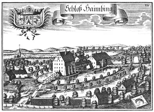 Nach der Ansicht von Michael Wening von 1721 ist Haiming noch ein aus zwei Baukörpern bestehendes Wasserschloss. Der Hauptbau war dreigeschossig (mit einem Untergeschoss), mit starken Stützmauern versehen und mit einem Walmdach gedeckt; der zweite Bau war nur zweigeschossig und ebenfalls walmdachgedeckt; beide Bauten waren mit einem überdachten Wehrgang verbunden und über Brücken erreichbar. In der nahen Umgebung waren weitere Teiche und Wasserbauten zu sehen.