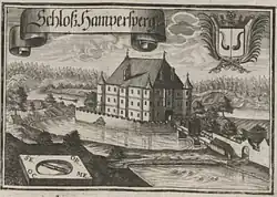 Das Wasserschloss war ein kompakter dreigeschossiger Renaissancebau mit vier runden Ecktürmen. Ein Modell von Schloss Hampersberg befindet sich im Haager Landesmuseum.