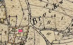 In der Bayerischen Denkmalliste wird der ehemalige Gutshof als zweigeschossiger und verputzter Massivbau mit einem Walmdach aus der Mitte des 18. Jahrhunderts beschrieben.[3] Der Bau trägt auf dem Urkataster von Bayern die Hausnummer 1.