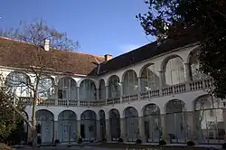 Als letzter Überrest der ehemaligen landesfürstlichen Burganlage ist der Palas mit dem Spitzbogentor erhalten geblieben. Dessen nördlicher Teil stammt aus dem Mittelalter. An dieser Stelle sind durch archäologische Grabungen Fundamente des einstigen Bergfrieds mit einem Grundriss von 9,8 × 11 Meter freigelegt worden. Der Außenaufgang auf der Hofseite ist mit Erker und Doppelfenster im Renaissance-Stil versehen und mit 1576 datiert.[3]