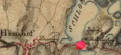 375 Meter nordnordwestlich des Schlosses befand sich die Zickenburg und 575 Meter nordnordwestlich die Zinnenburg.