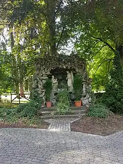 Das Anwesen umfasst einen großen Park entlang der Hauptstraße (Rue de Luxembourg), von der er durch eine hohe Mauer getrennt ist. Der Park wurde kurz nach 1910 vom damaligen Eigentümer Anton Erpelding renoviert, die alten Bäume blieben dabei weitgehend erhalten. Die Ruine des mittelalterlichen Turms wurde in den neuen Park integriert. 2006, als die Mauern des Turms einstürzten, wurde die Ruine zusammen mit einer Lourdes-Grotte entfernt.