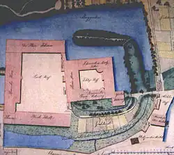 - Rekonstruktionszeichnung von Schloss und Lustgarten