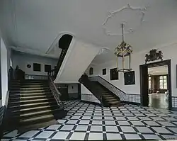 Das Innere weist verschiedene Stuckdecken und Kaminsimse im Louis-quinze-Stil auf. Die Eingangshalle wird von einer dreifachen Treppe dominiert. Eine Besonderheit ist der weitgehend im Originalzustand erhaltene Festsaal im Hauptgeschoss, dessen Einrichtung ein Beispiel für den Lütticher Barock und den Lütticher-Aachener Möbelstil der damaligen Zeit ist. Jahrhundert mit u. a. einer feinen Stuckdecke, einem mit Figuren eingelegten Parkettboden, einer Eichentäfelung mit reich verzierten Vertäfelungen sowie Tür- und Fensterrahmen, einem geschnitzten Natursteinkamin und mehreren antiken Wandteppichen. Im Esszimmer befindet sich eine Gold-Leder-Tapete.