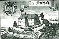 Nach dem Stich von Michael Wening war Hof ein zweigeschossiges, auf einem Hügel liegendes Bauwerk mit einem Satteldach. An der Nordseite war ein Vorbau angebracht. Südlich ist ein vermutlich ebenfalls zweigeschossiger Turm zu erkennen, der mit einem Verbindungsbau mit dem Herrenhaus verbunden ist. Das Schloss weist keine besondere Wehrhaftigkeit auf und ist nur teilweise von einem Holz- bzw. Palisadenzaun umringt.