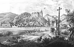 Die ursprüngliche Burg wurde in der zweiten Hälfte des 13. Jahrhunderts an einem strategisch wichtigen Punkt oberhalb von Jauernig (Javorník) erbaut. Die erste schriftliche Erwähnung stammt aus dem Jahr 1307, als Herzog Bolko I.[1] von Schweidnitz als Besitzer erwähnt wurde. 1348 wurde die Burg durch Bolko II. von Schweidnitz an den Breslauer Bischof Preczlaw von Pogarell verkauft und damit Bestandteil des bischöflichen Fürstentums Neisse.