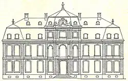 Ein erster Entwurf Couvens von 1749 sah ein dreigeschossiges Gebäude mit mittlerem Turm und Flügelbauten vor, um das die Düssel geleitet werden sollte. Der Oberbaudirektor Nicolas de Pigage setzte jedoch nur einen Teil der ursprünglich geplanten Baumaßnahmen um. So wurde das Gebäude 1762 ohne Seitenflügel fertiggestellt.[2] Bis 1795 diente es als Sitz der obersten Jägermeister.
