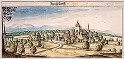 Mit der Erwähnung von Hugo von Jegistorf begegnen wir in einer Urkunde von 1175 erstmals nicht nur einem Angehörigen dieser Herrschaftsfamilie, sondern auch dem Ortsnamen selbst.[4] Das Todesjahr Bertholds II. von Zähringen (1111) wird in Veröffentlichungen über Schloss Jegenstorf oft als legendäres, jedoch nicht nachweisbares Datum der Erbauung der ursprünglichen Wasserburg genannt.[5] Das zähringische Allod Jegenstorf verwalteten die Herren von Jegistorf, die Gefolgsleute der Zähringer, als erbliches Lehen. Anteile an der Herrschaft, Anteile am Kirchensatz und Zinsgüter gingen später in den Besitz der Familien Buwli, von Erlach, Fries, Gloggner, von Schwanden, Spilmann, von Torberg und Zigerli über.[6] Mitherr war ab 1316 Rudolf von Erlach († 1360), in späteren Generationen auch die bernischen Schultheissen Ulrich von Erlach († 1465) und Rudolf von Erlach (1448–1507).[7]