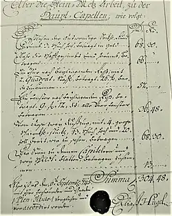 Hof-Steinmetzmeister Elias Hügel war auch der Steinmetz des Stiftes Heiligenkreuz. Beim Neubau der Haupt-Capelle in Königshof 1745 leitete er die Steinmetzarbeiten. Der auswendige Sockel, rundum 3 Schuh hoch, Gesims rundherum, eine Tür, vier Fenster, Stein zu denen Capitelern und zwei Schild-Platten.[22]