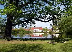 Das Schloss Königswartha befindet sich am Südrand des gleichnamigen Orts Königswartha im sächsischen Landkreis Bautzen. Es wurde Ende des 18. Jahrhunderts erbaut und gehört dem Freistaat Sachsen.[1] Im wasserreichen Oberlausitzer Heide- und Teichgebiet gelegen, beherbergt es seit Ende der 1940er Jahre eine Fachschule für Binnenfischerei.