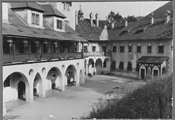 - ↑ a b c d Die ältesten Fotos und Ansichtskarten enthalten zwar kein Datum, können aber aufgrund baulicher Veränderungen (z. B. fehlender dritte Walmgaube am Westflügel) zeitlich eingeordnet werden.