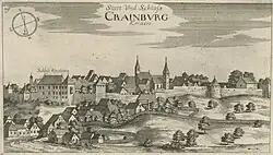 Das Schloss, mitten im Stadtzentrum von Kranj, steht oberhalb des Save-Übergangs auf einem Teil der Oberstadt, die von der Antike bis zum frühen Mittelalter ein befestigtes Areal war. Heute beherbergt das Gebäude Einrichtungen der Gemeinde Krajn sowie eine Abteilung des Museums der Oberkrain.[1]