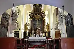 Die heute zweigeschoßige Schlossanlage mit Nebengebäuden enthält einen sehenswerten Renaissance-Innenhof, der mit vier Türmen verstärkt ist.