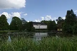 Das dreigeschossige Haupthaus ist ein querliegender, weißer klassizistischer Bau von 1772. Der Architekt war Hans Næss, der jedoch auch Einflüsse seines Lehrmeisters N. H. Jardin verarbeitete. Von den fünfzehn Fensterachsen zur Hauptfront bilden drei einen Mittelrisalit mit einer großen Treppenanlage, die in das Piano nobile über einem hohen Sockelgeschoss führt, und einem von vier Pilastern getragenen Architrav. Der Mittelteil wird von jeweils fünf Fensterachsen flankiert, die von zwei einachsigen Eckrisaliten mit jeweils einem kleinen Balkon begrenzt werden. Das große ungegliederte Walmdach nimmt auf die Einteilung der Fassade keinen Bezug. Die Inneneinrichtung stammt zum größten Teil von 1770 bis 1780.
